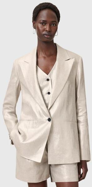 AllSaints len blézer AVERIE ezüst, sima, egysoros gombolású, W067QC - ezüst 38