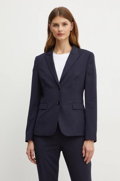 BOSS gyapjú kabát sötétkék, sima, egysoros gombolású, 50490035 - sötétkék 34