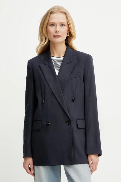 BOSS len blézer sötétkék, sima, kétsoros gombolású, 50537956 - sötétkék 42