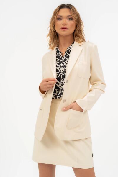 női blézer rugalmas anyagból béleletlenkarcsúsított fazon fémcímkével díszítve