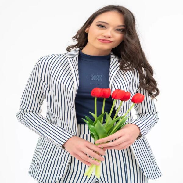 női blézer rugalmas anyagból béleletlenkarcsúsított fazon fémcímkével díszítve