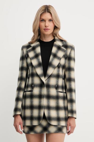 Liu Jo blézer gyapjú keverékből bézs, mintás, kétsoros gombolású, MF5193 T079A - bézs 38