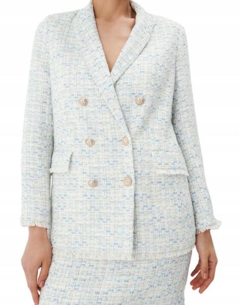 Mohito CC17207 Elegáns Kétsoros Tweed Női Blézer Arany Cérna S