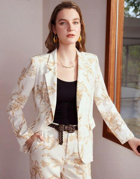 Shein Motf Blézer Bézs Virágos Lenvászon 40 L L